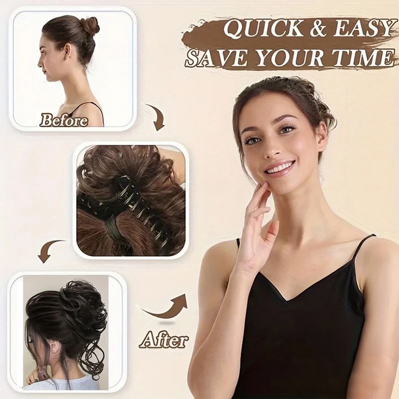 Synthetic Chignon Messy Bun Claw Clip in Hair Piece Wavy Curly Hair Bun Ponytail Extensions Scrunchie Hairpieces for Women