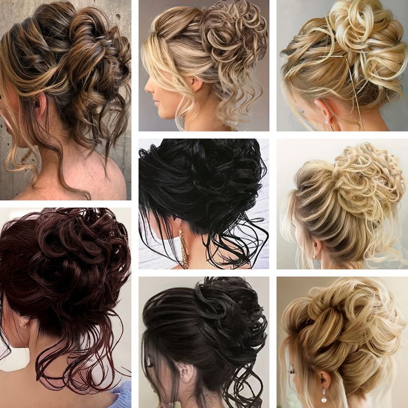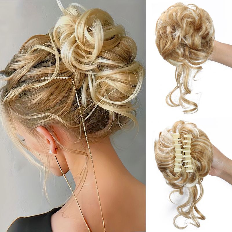Synthetic Chignon Messy Bun Claw Clip in Hair Piece Wavy Curly Hair Bun Ponytail Extensions Scrunchie Hairpieces for Women