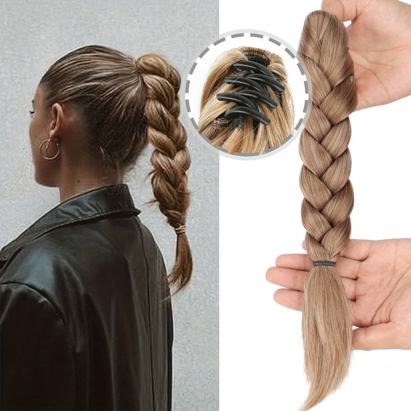 Synthetic Claw Clip On Braided Ponytail Extension Handmade Braids Pony Tails for Women Adds Hair Volume Black Brown Blonde