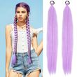 Synthetic Colorful Ponytail Extension, 2Pcs Purple Long Straight DIY Braided Pony Tail Hairpiece for Women Hair Accessories