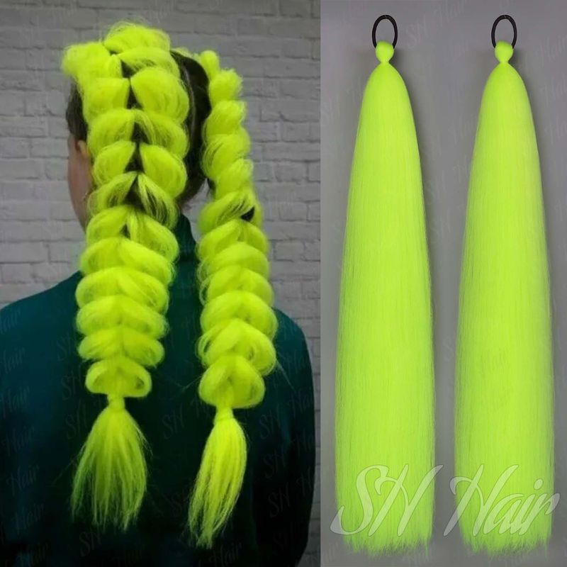 Synthetic Colorful Ponytail Extension, 2Pcs Purple Long Straight DIY Braided Pony Tail Hairpiece for Women Hair Accessories