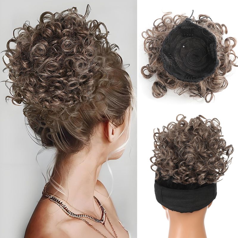 Synthetic Fiber Messy Bun Short Curly Ponytail Extension - Elastic Drawstring Loose Hair Bun Pieces For Women With Thinning Hair
