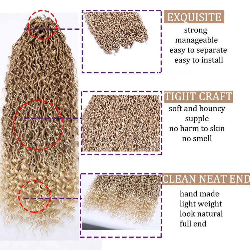 Synthetic Goddess Locs Crochet Hair Braids Curly Faux Locs Braiding Hair Extensions Wig For Women Black Hippie Boho Style
