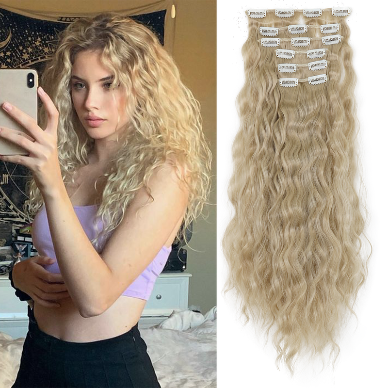 Synthetic Hair Extensions 16Clips In 6PCS Set Curly 22inch Long Clip On Hairpiece Corn Wavy Style For Women Girls Daily Party