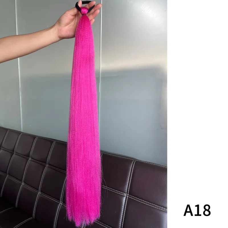 Synthetic Long Straight Ponytail Extensions With Rubber Band DIY Braided Ponytail Purple Hair Accessories for Halloween
