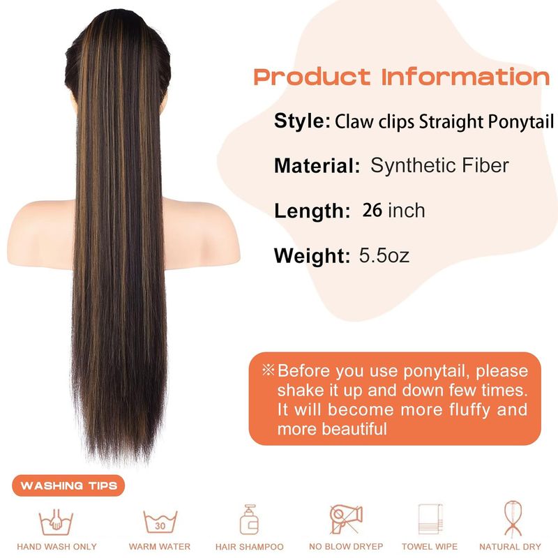 Synthetic Long Straight Ponytail Hair Extensions For Women Claw Clips in Ponytail Hair Extensions Straight Hair Ponytail