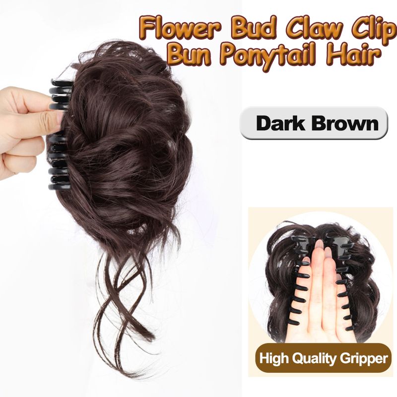 Synthetic Messy Bun Hair Piece Claw Clip Ponytail Extensions Scrunchie-style Lazy Flower Bud Bun Chignon Wavy Curly Ponytail