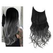 Synthetic No Clips In Natural Hair Extension Ombre Black Blonde Pink One Piece Long Wave Invisible Wire False Fake Hair Piece