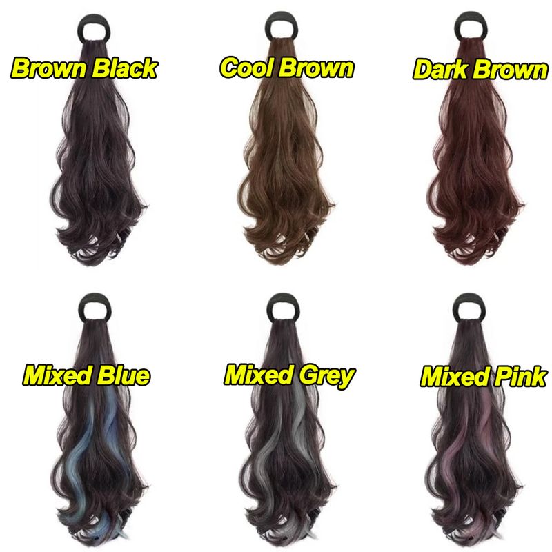 Synthetic Ponytails Hair Extension With Rubber Band Long Curly Wavy Layered Ponytail For Women Daily Use Heat Resistant Hair Wig