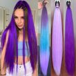 Synthetic Purple Ponytail Extension with Rubber Band Long Straight DIY Braided Pony Tail Hairpiece Women Hair Accessories