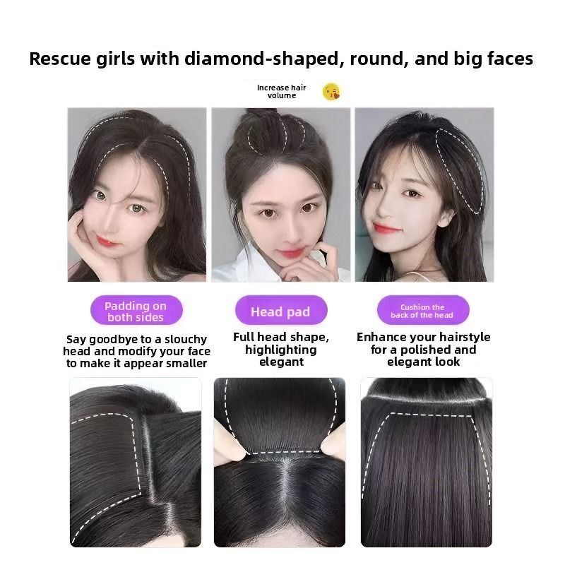 Synthetic Short Straight Pad Invisible Hair Extension Lining of Hair Top Side Cover Hairpiece for Women
