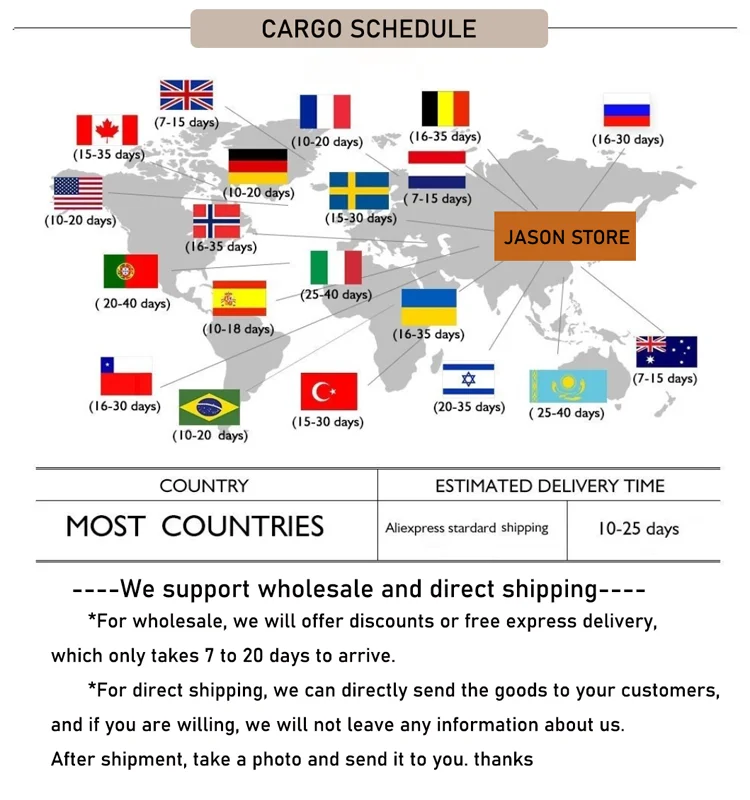 Please note that delivery times are estimates and may vary due to customs procedures, carrier delays, weather conditions, or other unforeseen circumstances.