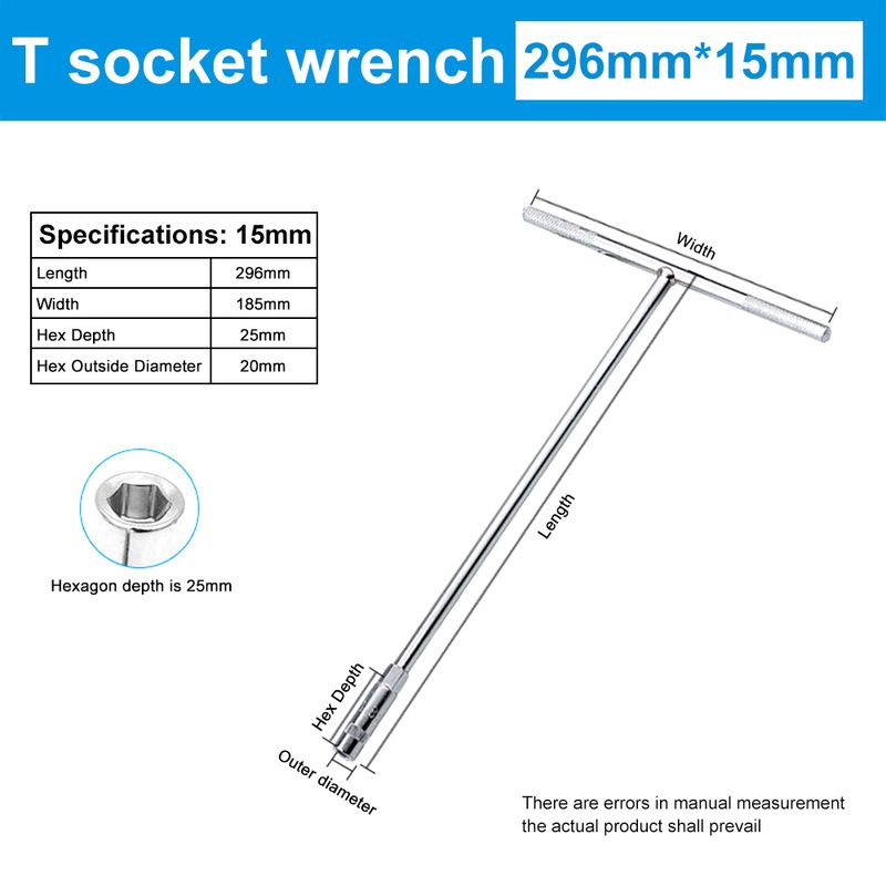 T-shaped Hand Tool Hex Socket Wrench 7mm 8mm 9mm 10mm 12mm 13mm 15mm 17mm Metric T-handle Wrench Extended T-Socket Wrench