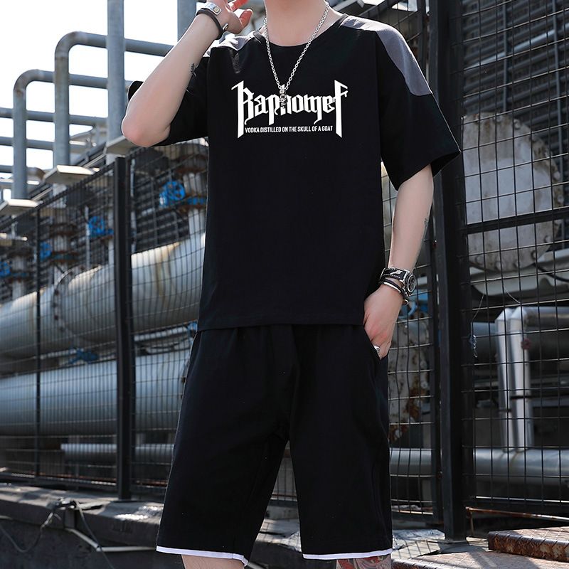 T-shirt Casual Short Sleeve Suit Series Black 2XL