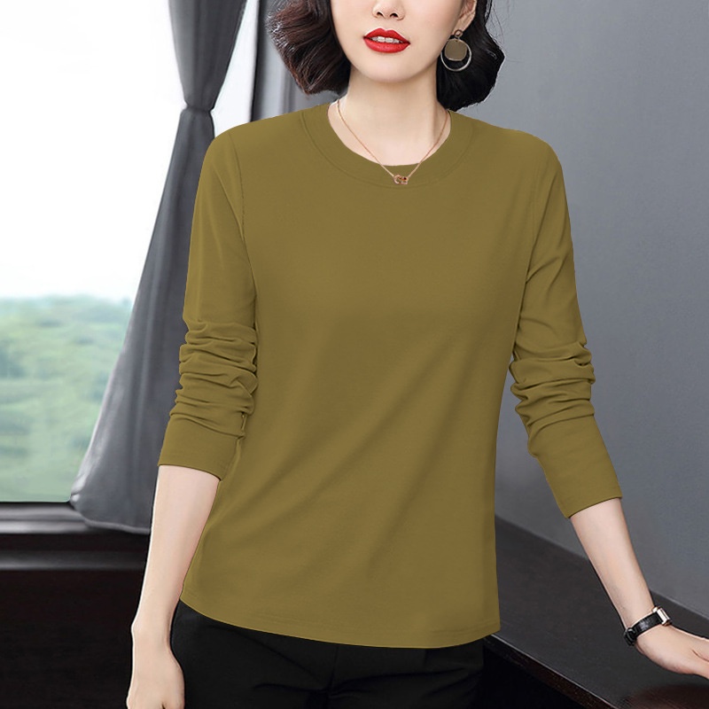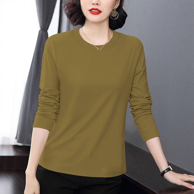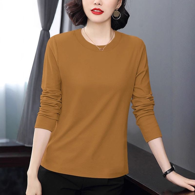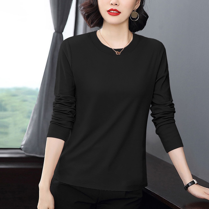 T-shirt Long Sleeve Middle-aged Mom Loose Wear Bottoming Shirt Top Black 5XL