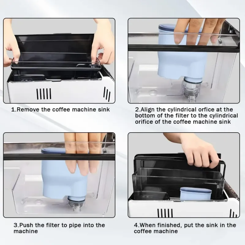 【 Easy installation 】 Simply connect your espresso machine water filter to the water tank of the coffee machine and activate it through the user button to enjoy pure coffee; Replace the filter at least every 3 months or as required by the machine. After using the filter, the content of harmful pollutants such as chlorine and heavy metals will be greatly reduced.