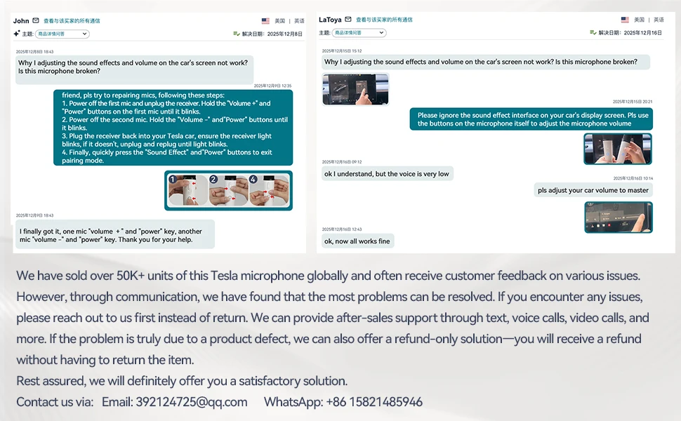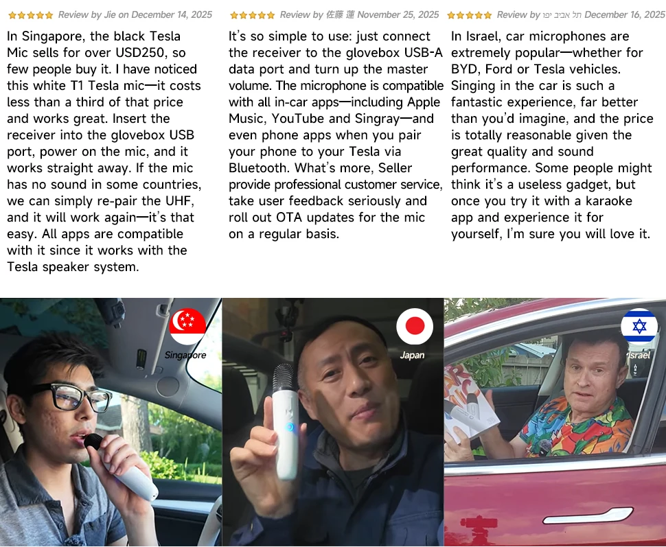 Answer: Normally, most cars do not have this delay issue. However, in some versions, the newly added Sync-Light may cause a slight delay. Simply turning off the Sync-Light in your car will resolve this problem effectively! As per teSla’s official audio solution for LvDonic systems, both the black microphones and LvDonic white microphones may encounter this issue. Just turn off the Sync-Light and try again! If the delay still exist, Please Remove USB hubs or update the mic’s firmware via the MICASSITANT app (available on Google Play).  or report to us to slove.