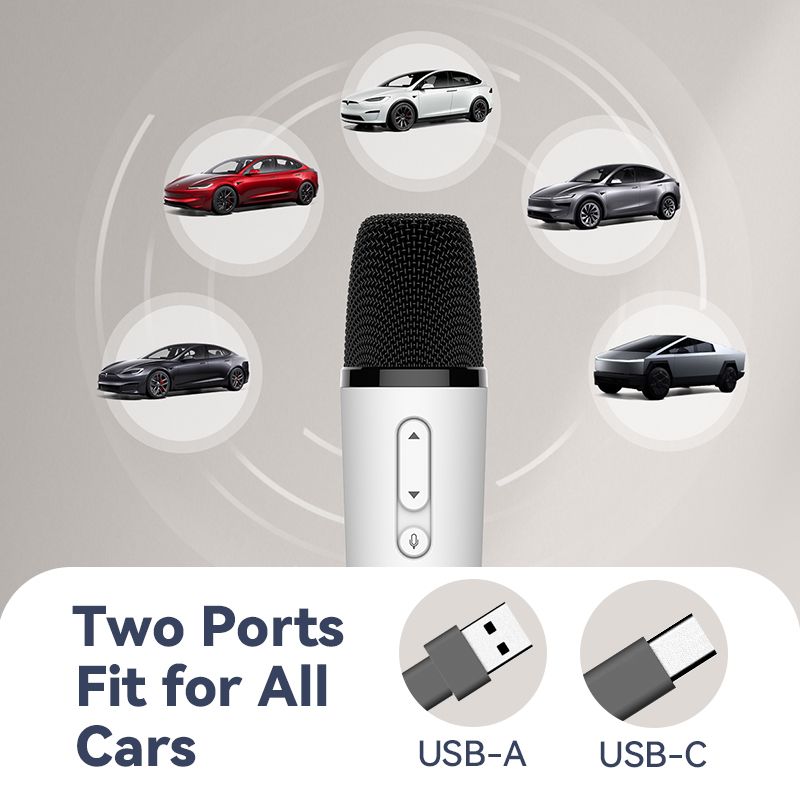 T1-테슬라 Car Karaoke Microphone, 테슬라 Rechargeable Caraoke Mic with USB-A & USB-C Receiver, Plug to Use,No Need Pair