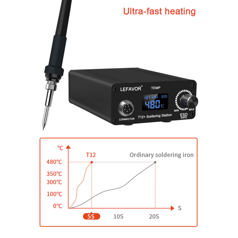 T12 Soldering Station LCD/0LED display Intelligent soldering iron 75W 180-480C Fast Heating Intelligent Anti-Static Thermostat