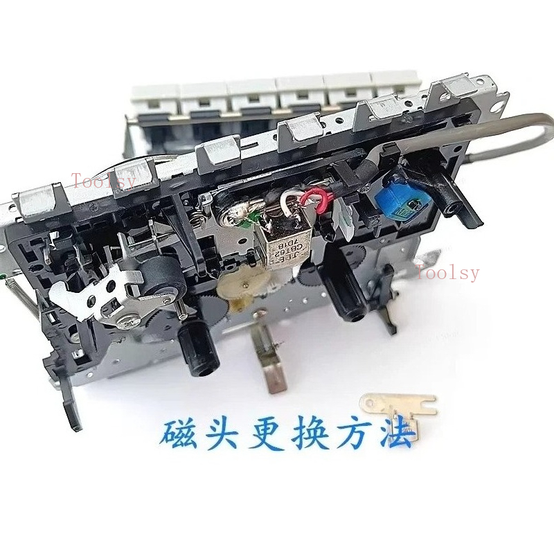 Head replacement method: 1: Remove the 4 screws fixed to the movement, then press the stop button of the movement to open the tape compartment door (note: if the tape compartment door is not opened, the movement cannot be removed), take the two button fixing screws on both sides of the line movement, remove the fixing screw on the left side of the magnetic head, the screw on the right side of the magnetic head adjusts the angle of the magnetic head, only need to loosen it a little, then pull the magnetic head to the left, install the two-channel magnetic head, weld the wire, and adjust the angle of the magnetic head (adjust the screw on the right).