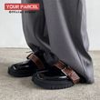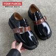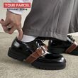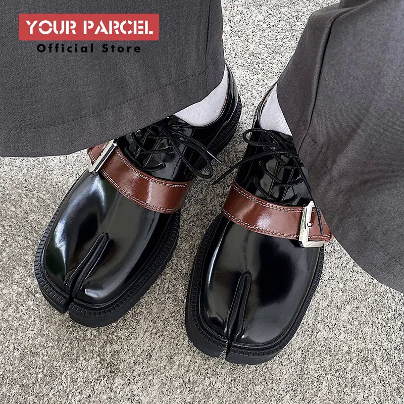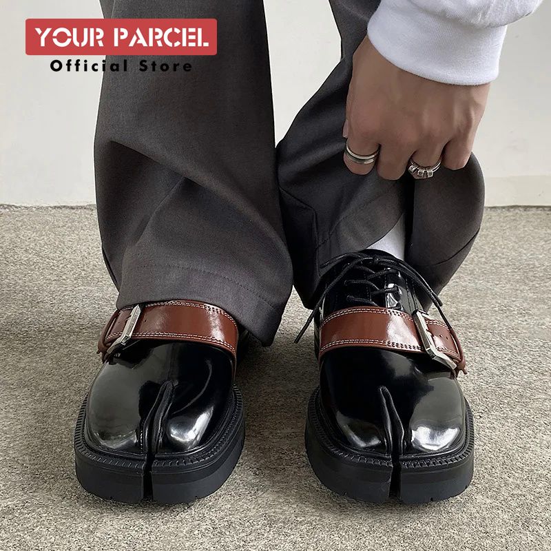Tabi shoes for men leather detachable belt buckle niche design sense split toe shoes shiny surface low top plus size loafers