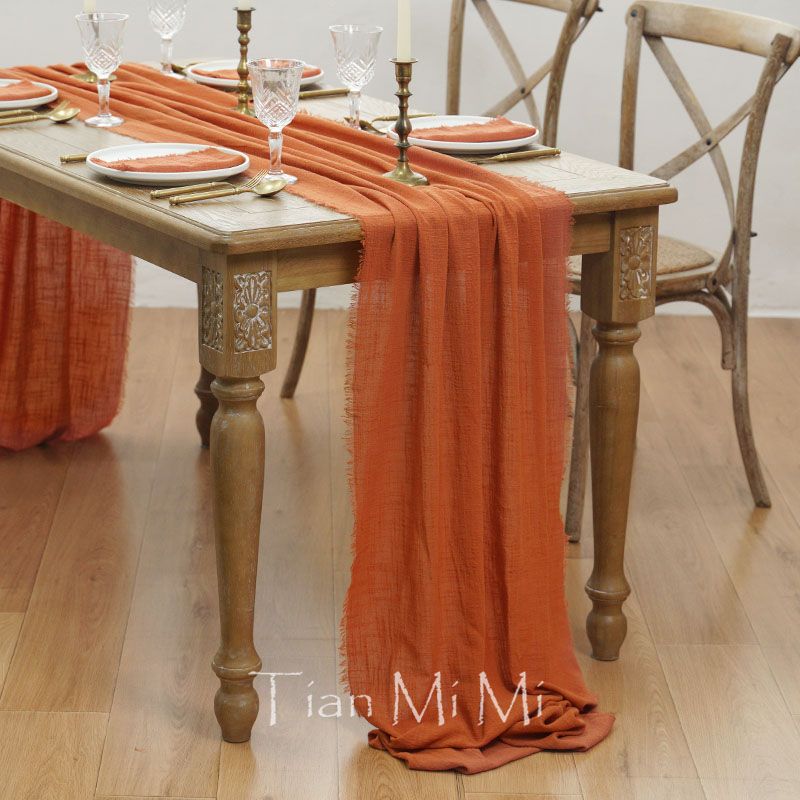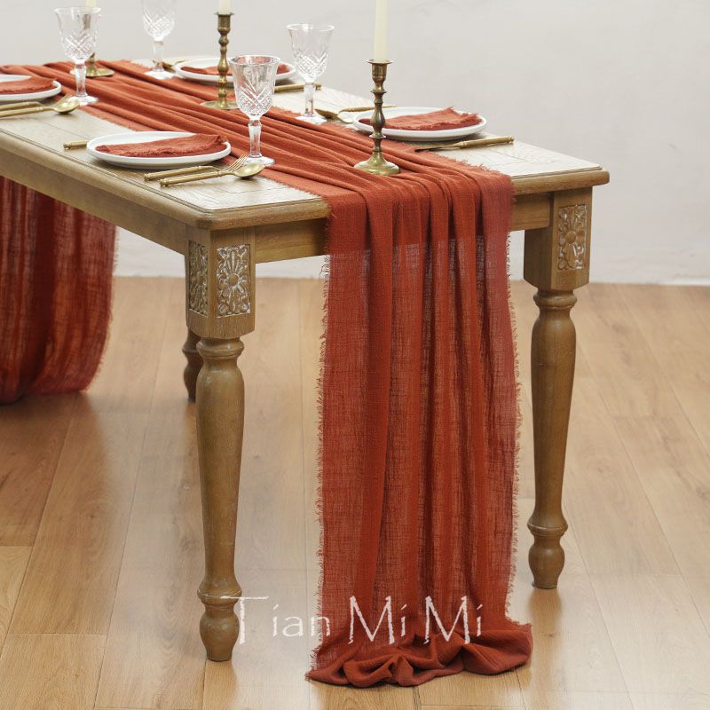 Table Runner Rustic Cotton Gauze Cloth Dining Burlap Retro Burr Texture Vintage for Wedding Party Linen Christmas Decorations