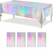 Package Include: 1 piece of iridescent holographic plastic tablecloth, measuring 54×108 inches (137×274 cm), fits all rectangular tables up to 8ft for party decor.