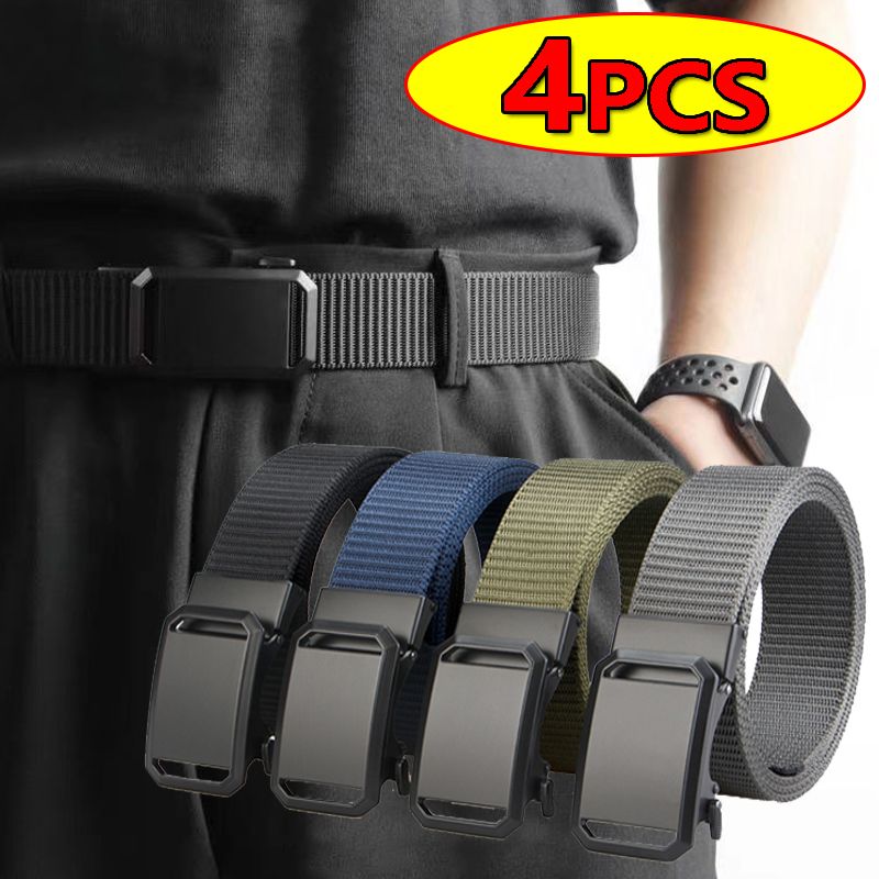 Tactical Waist Belt For Mens Canvas Automatic Buckle Belt Man Durable Casual Outdoor Hunting Adventures Training Pants Belt Golf