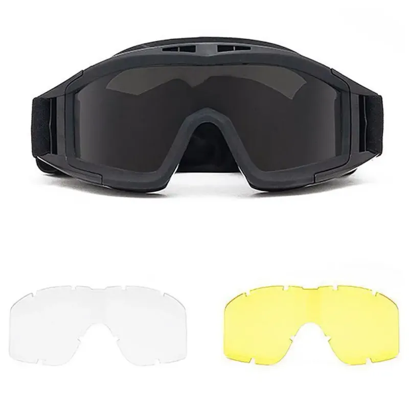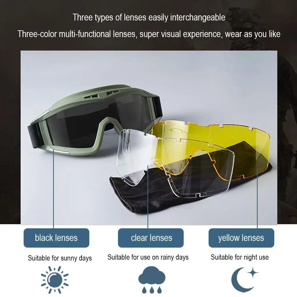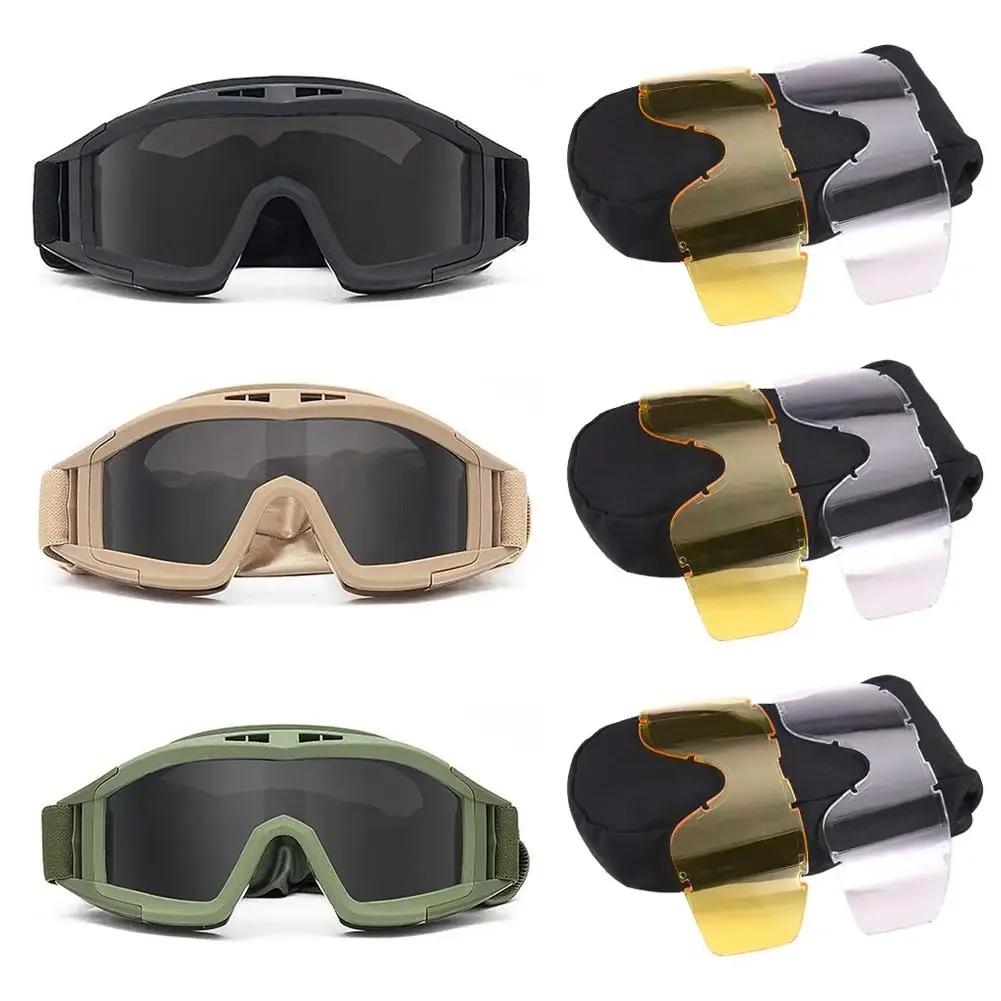 Tactical Goggles 3 Lens Windproof Dustproof Shooting Motocross Motorcycle Mountaineering Glasses Safe Protection CS Game Glasses