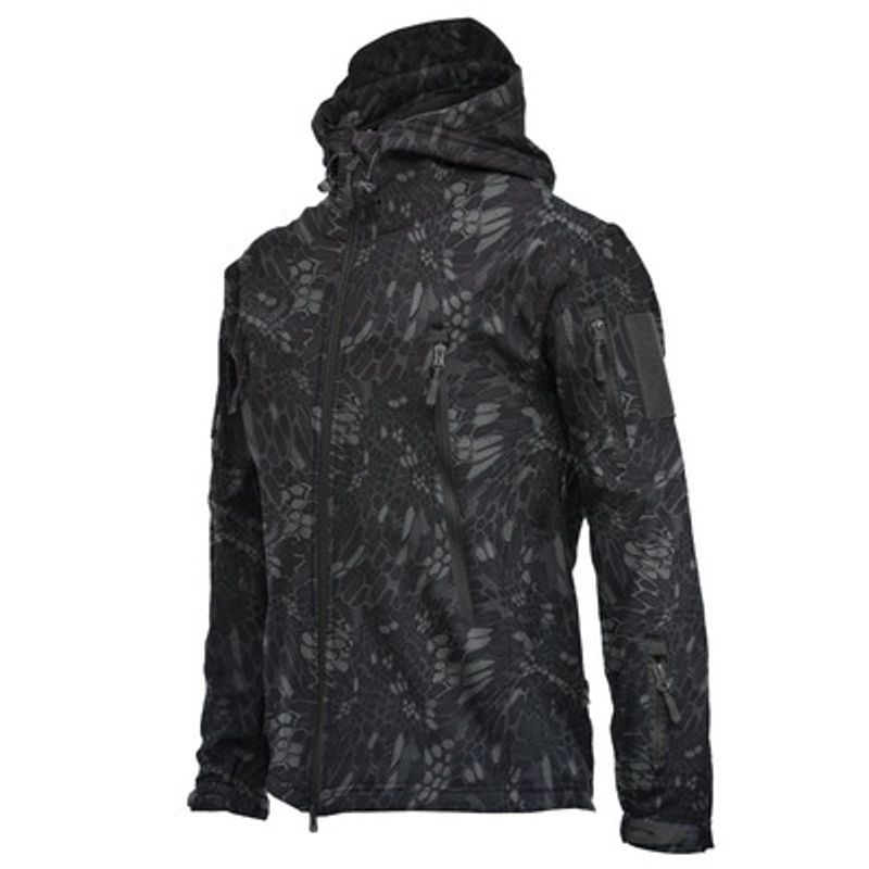 Tactical Outdoor Keep Warm Fleece Shell Jacket Dark Night Camouflage Brushed XL