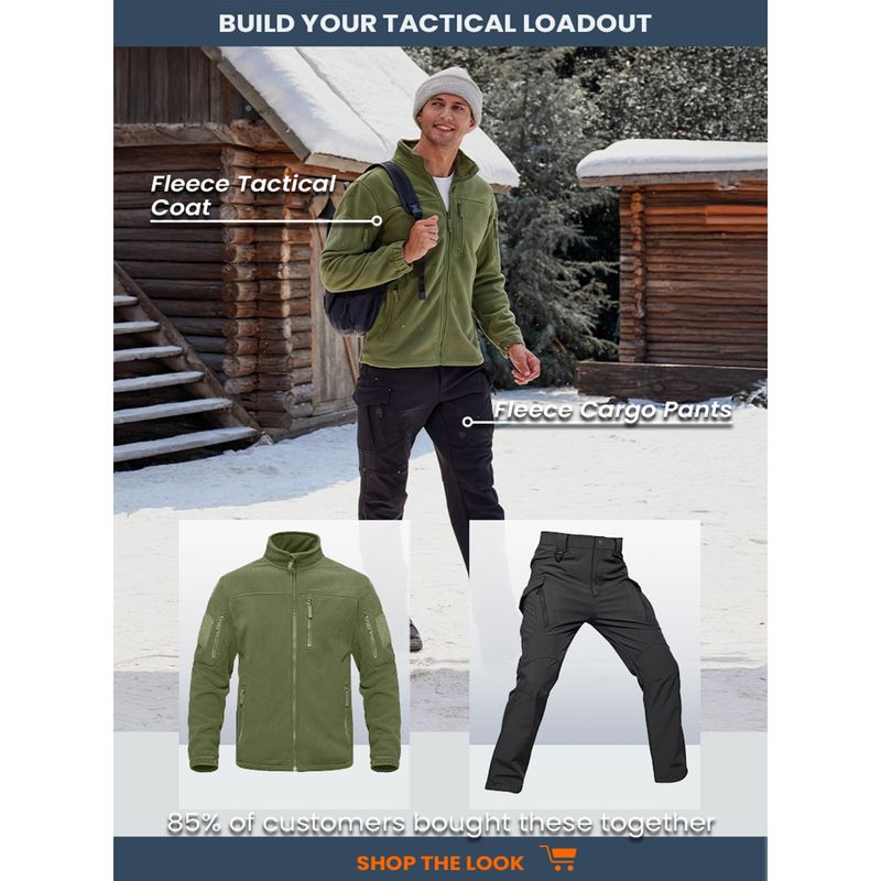 TACVASEN Full Zip Up Green Fleece Jacket Thermal Warm Work Coats Mens Zipper Pockets Jacket Hiking Training Outwear Windbreaker