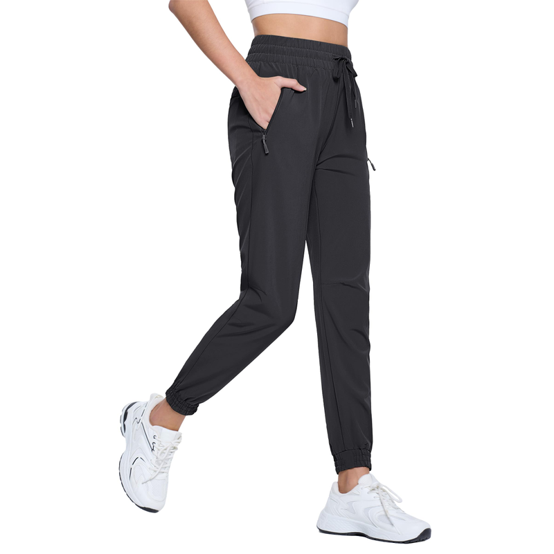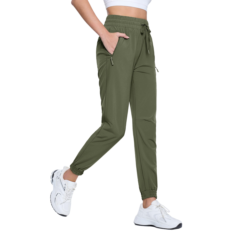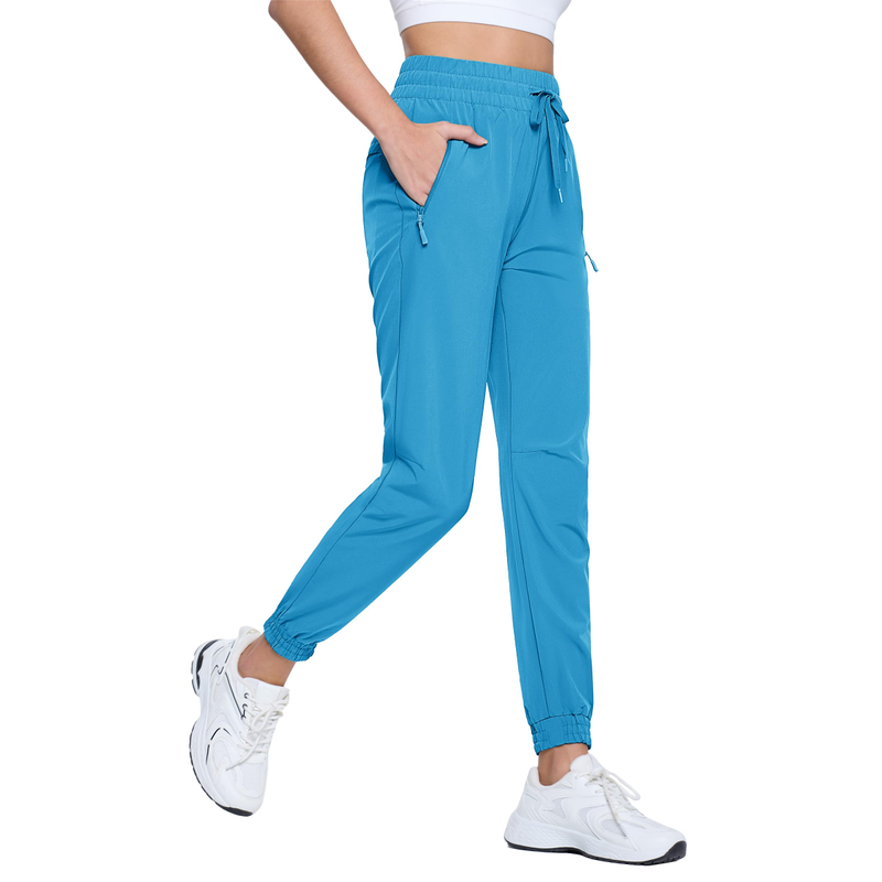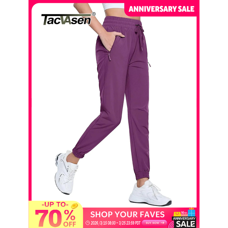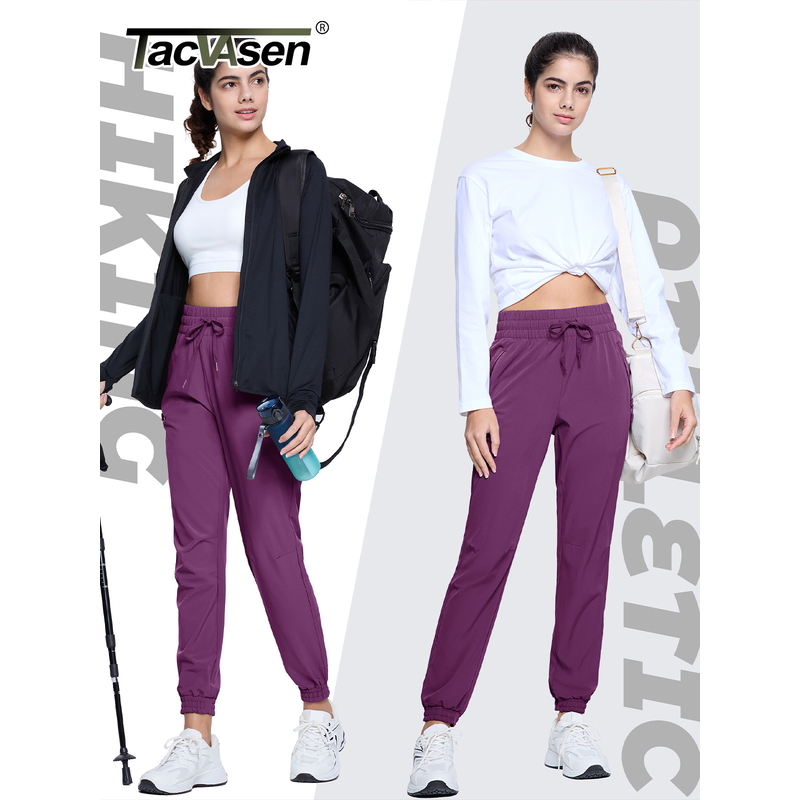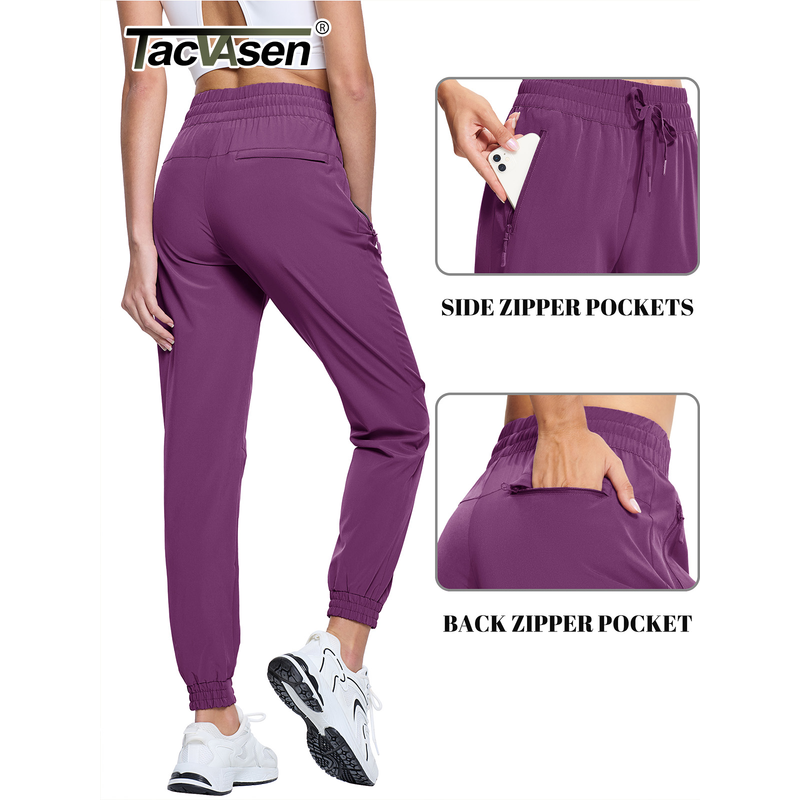 TACVASEN Quick Dry Hiking Pants Womens Outdoor Sports Drawstring Waist Joggers Waterproof Lightweight 3 Zipper Pockets Trousers