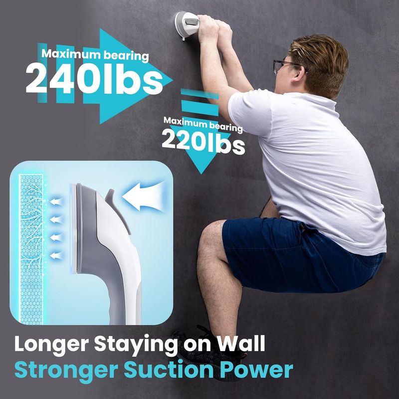 【Powerful Suction & Strong Bearing】- Crafted from the ABS material and imitated the absorption of bionics octopus sucker, the stronghold suction bathtub grab bar for shower can support up to 240 LBS at an instant. The diameter of the suction cup is 4.3 inch, which will be more and more tight on the wall over time pass. Strong suction ensures the handicap bathroom bathtub stable enough to support your balance.