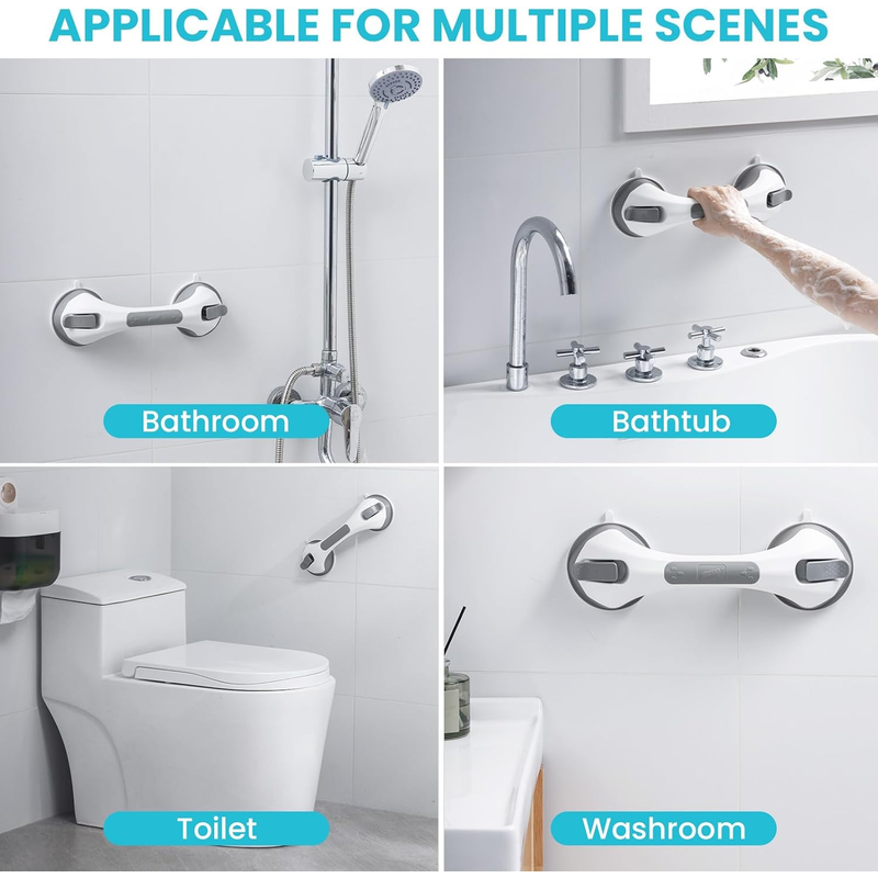【No Drill & Easy Installation and Remove】 The grab bars only takes 5 seconds to install, even the elderly can easily complete the installation.With no drilling and no hardware,you can install this grip shower handle on your bathroom easily. The safety handles can be removed without damage to the wall. The shower bars for elderly suction can be used repeatedly after dismantling and washing.