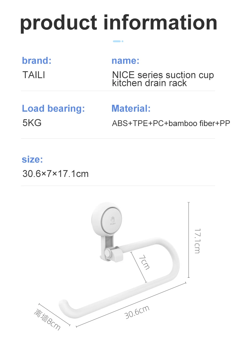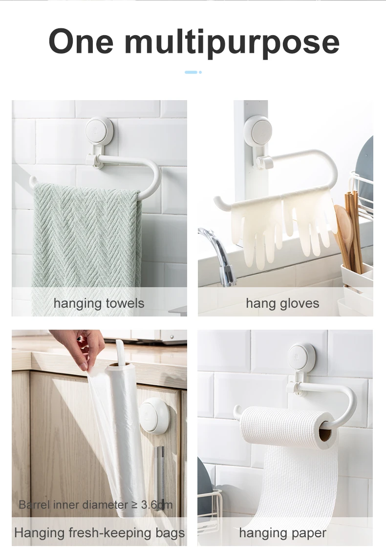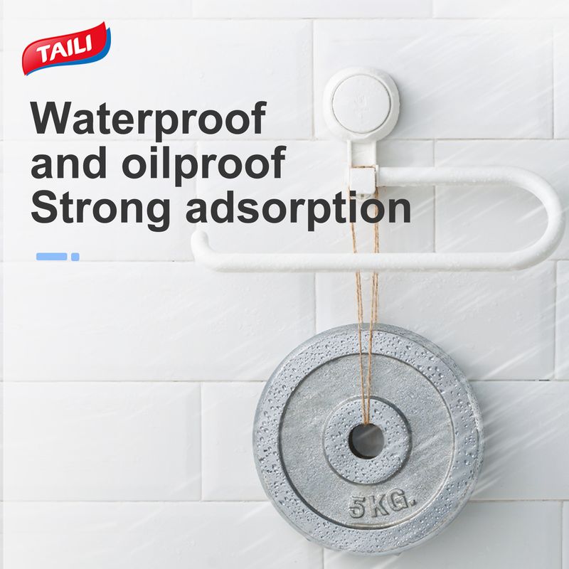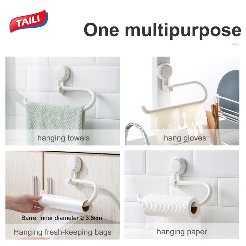 TAILI Suction Cup Kitchen Paper Towel Holder No Drilling Reusable Roll Holder for Bathroom, Fresh-Keeping Bag Film Storage Rack