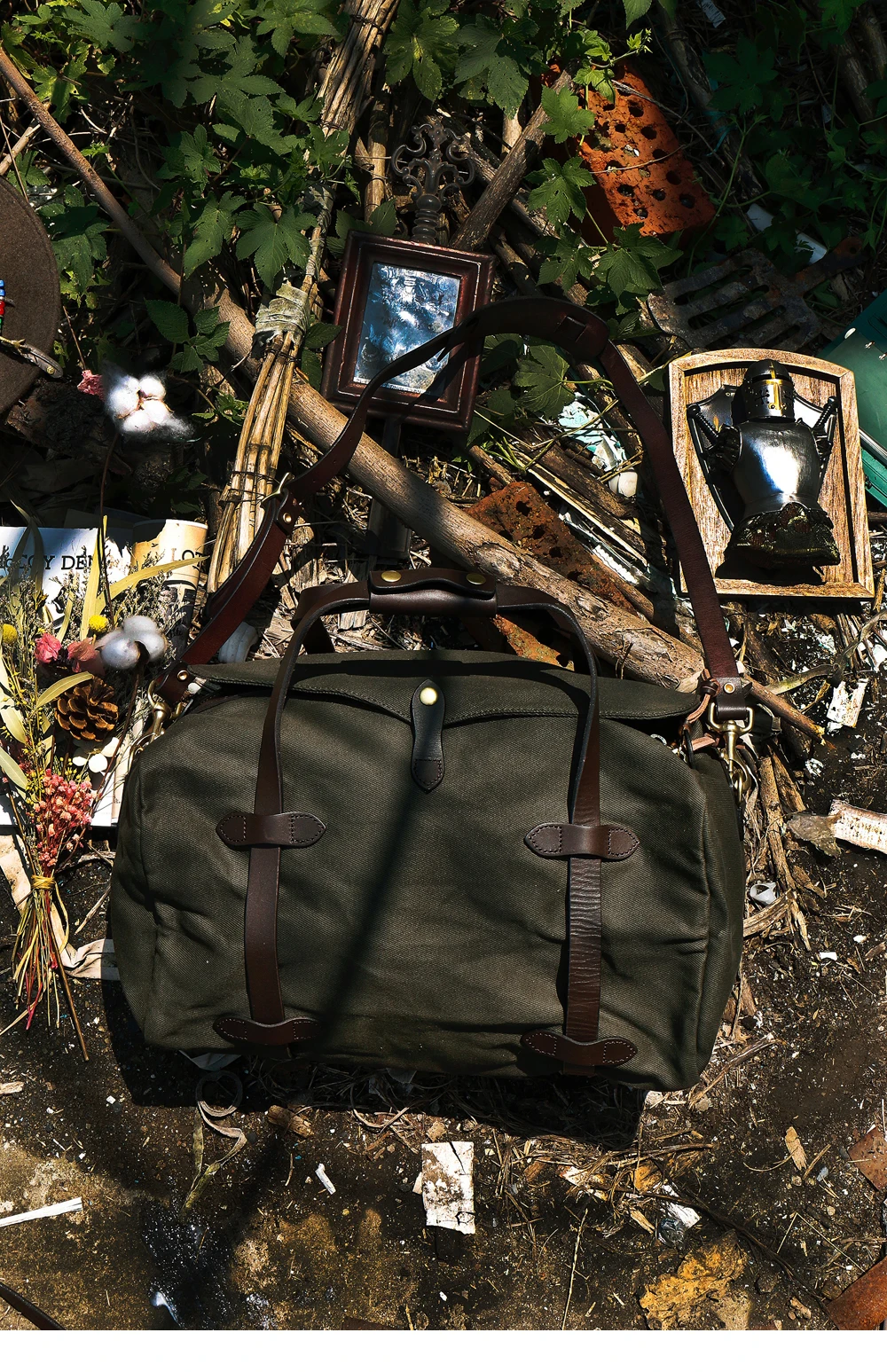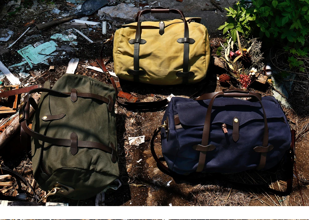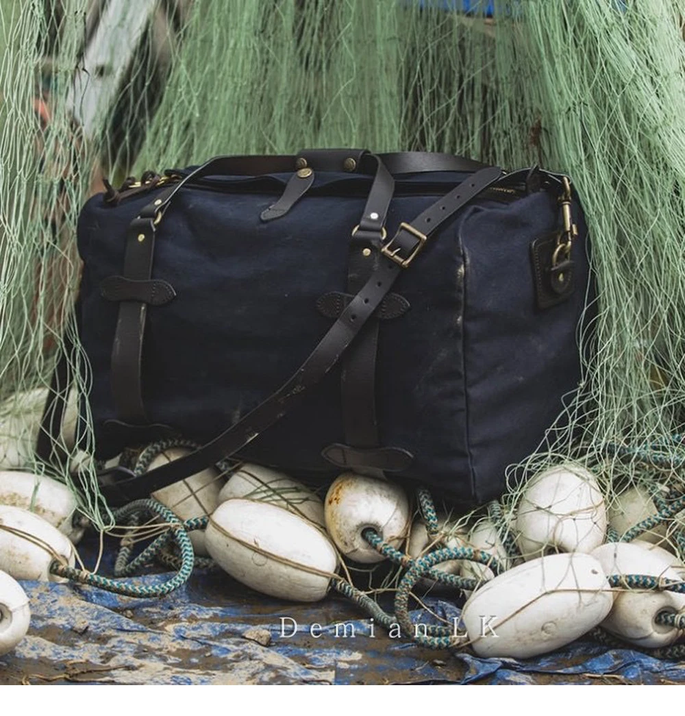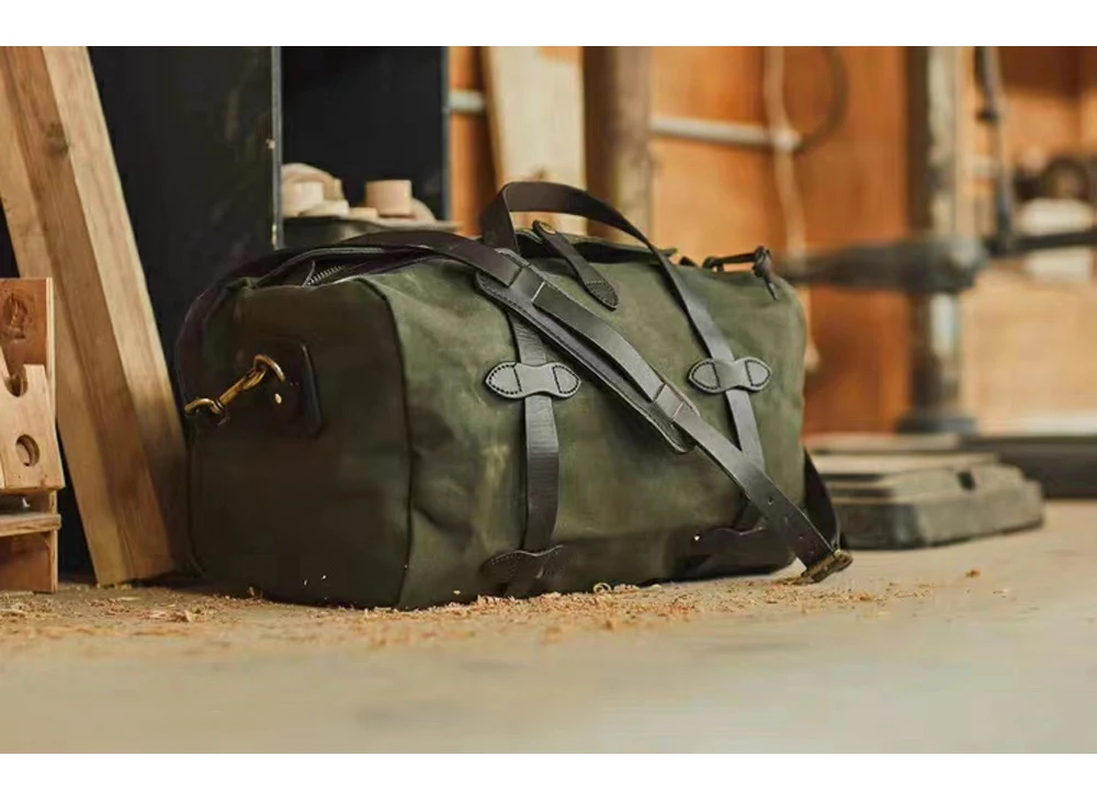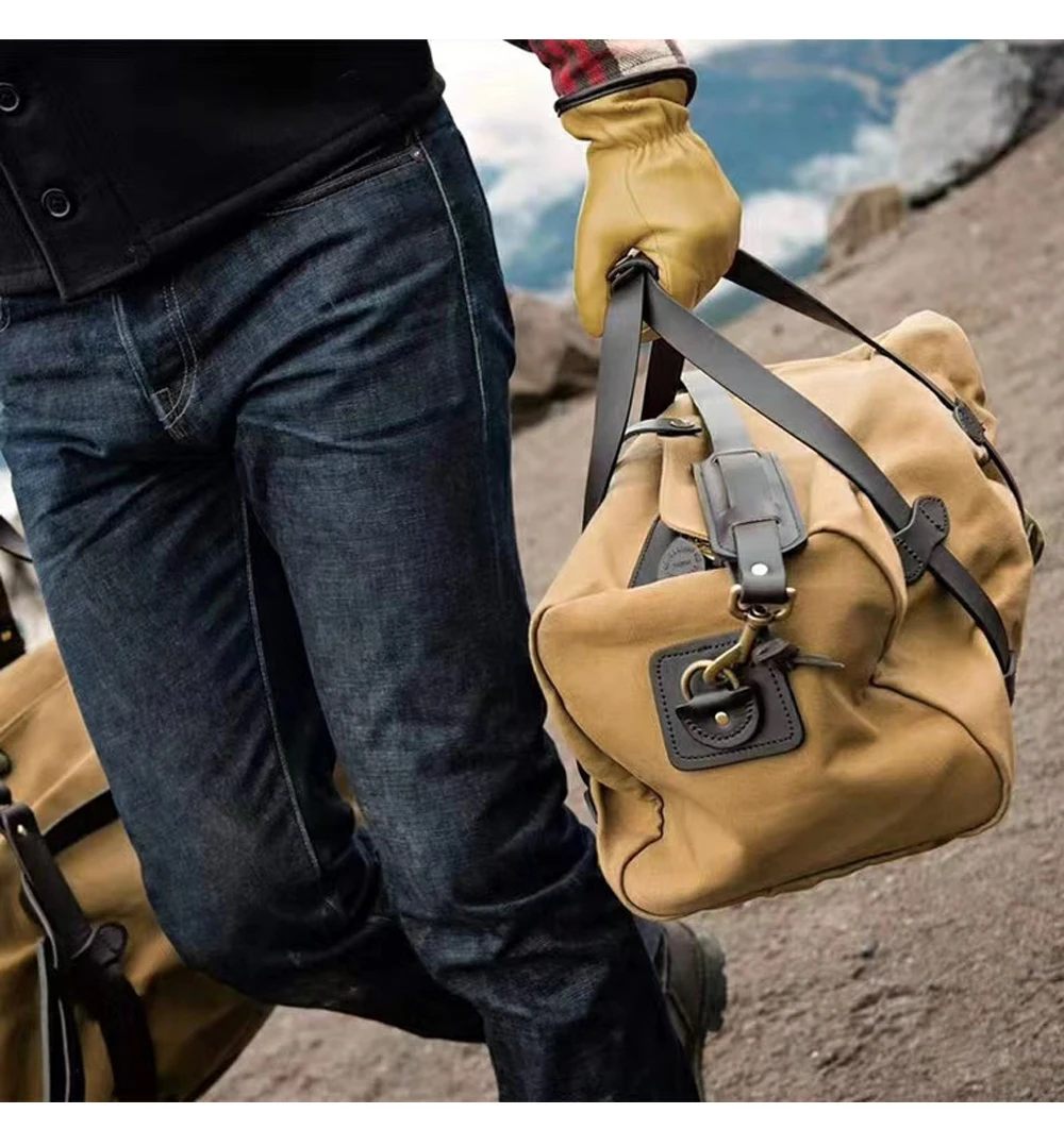 Tailor Brando High Quality Heavyweight Waterproof Oil Wax Canvas Travel Shoulder Bag YKK Zipper Classic Handbag for Men