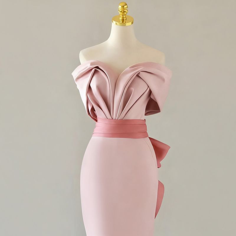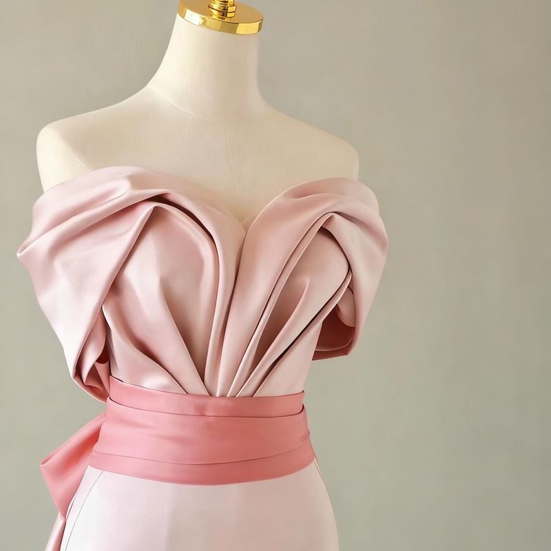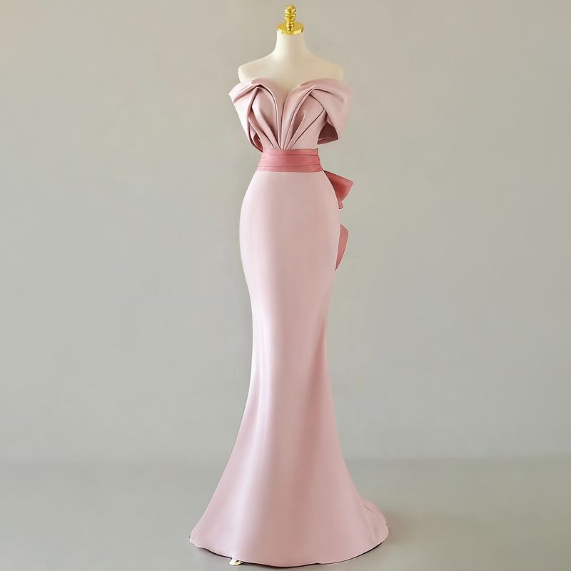 Tailor shop customizes light luxury strapless high-end banquet temperament host pink fishtail skirt