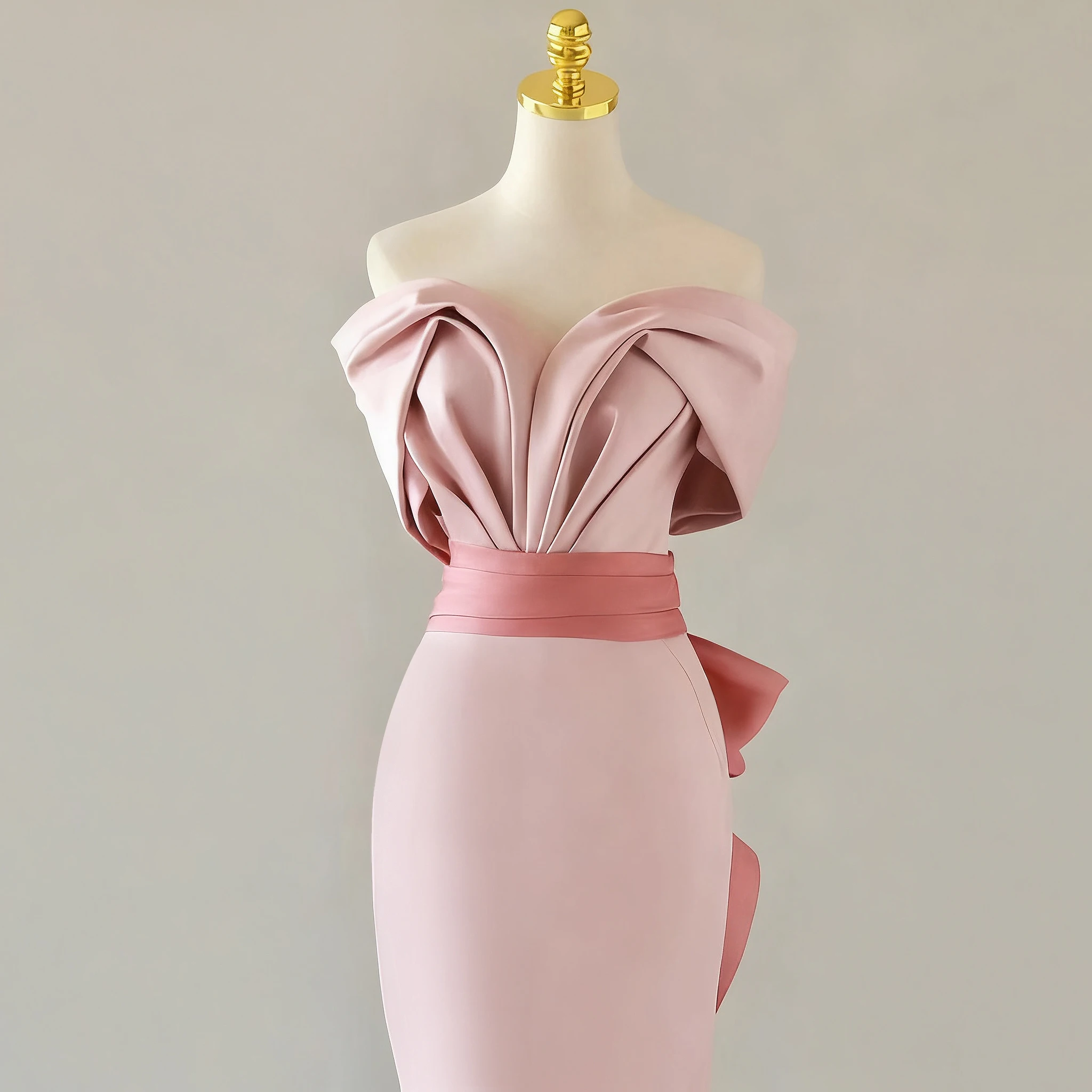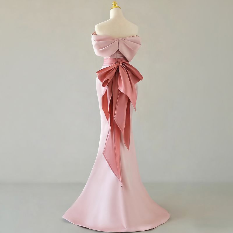 Tailor shop customizes light luxury strapless high-end banquet temperament host pink fishtail skirt