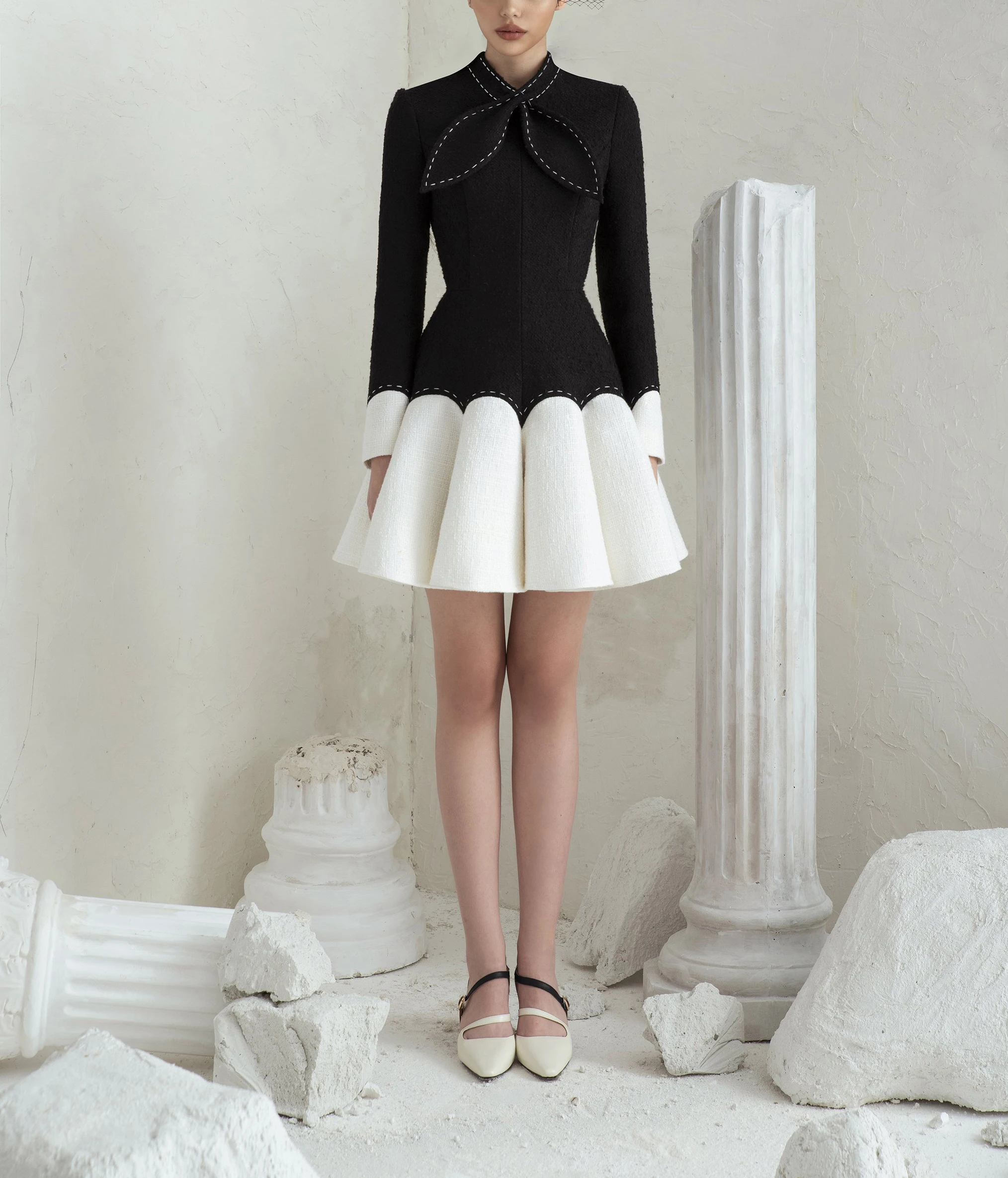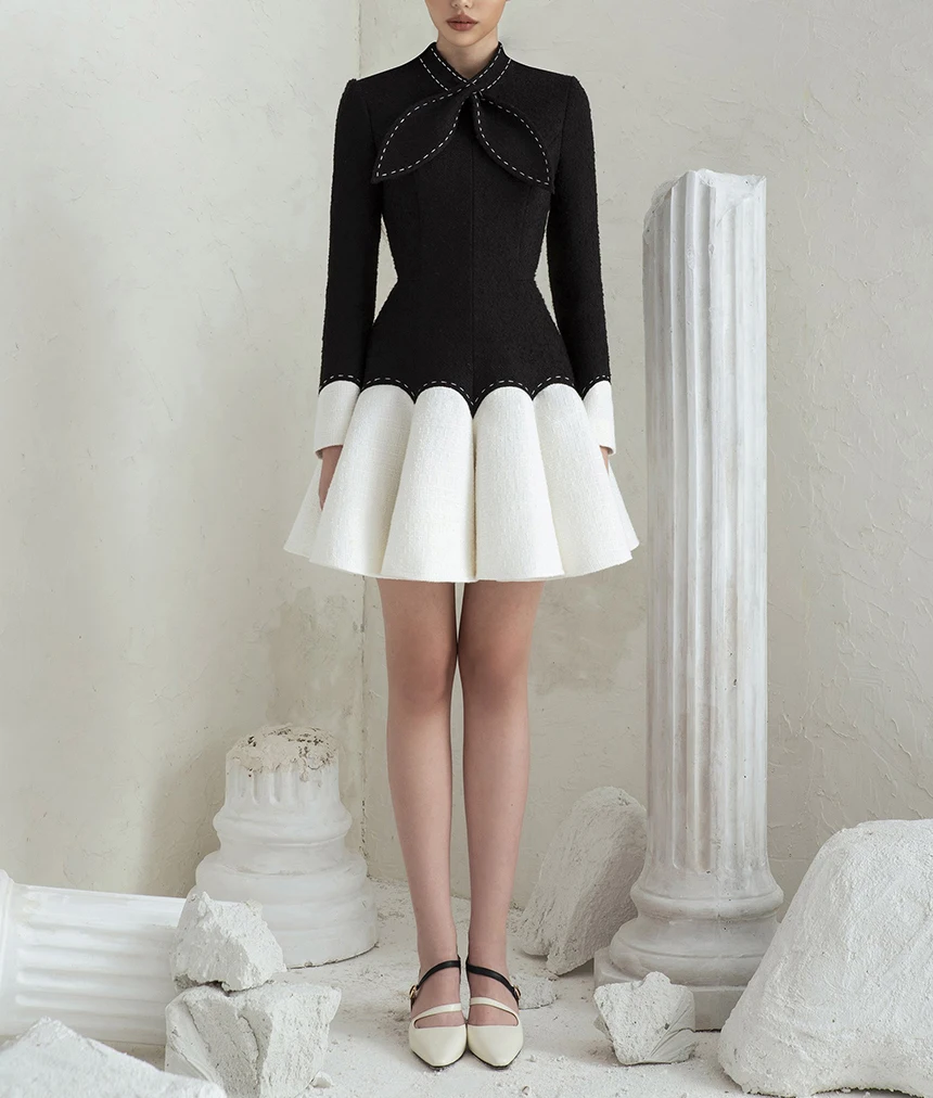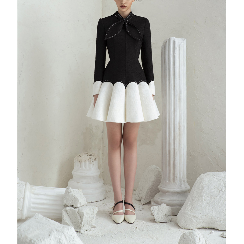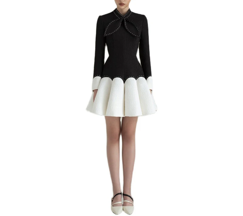 Tailor shop little black dress black white puffy female light luxury dress Semi-Formal Dresses princess dress black white dress