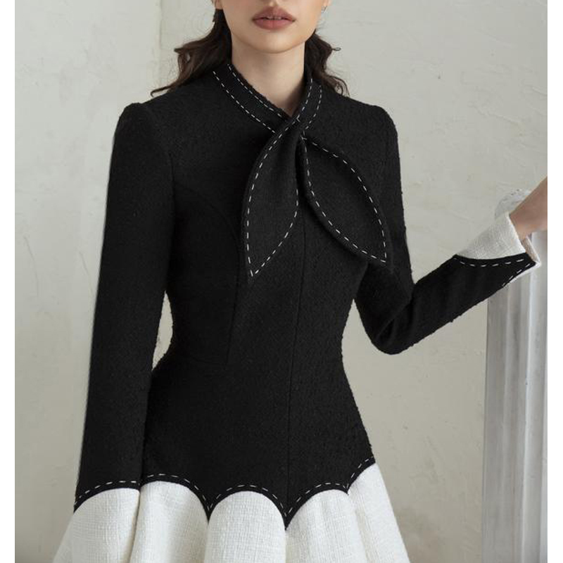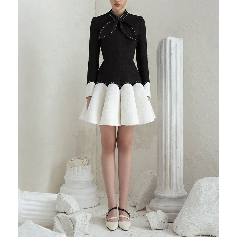 Tailor shop little black dress black white puffy female light luxury dress Semi-Formal Dresses princess dress black white dress