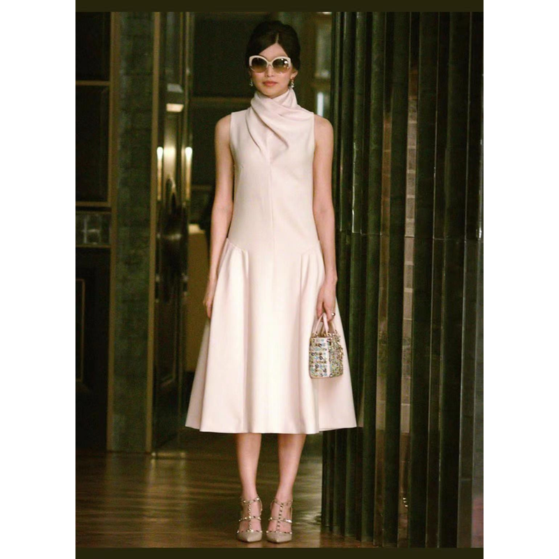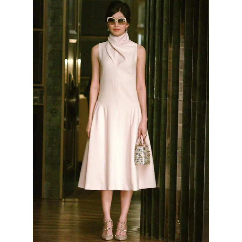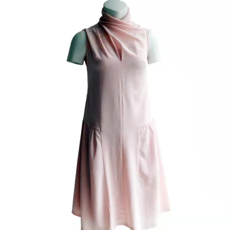 tailor shop pale pink crepe ruched collar sleeveless dress formal dress