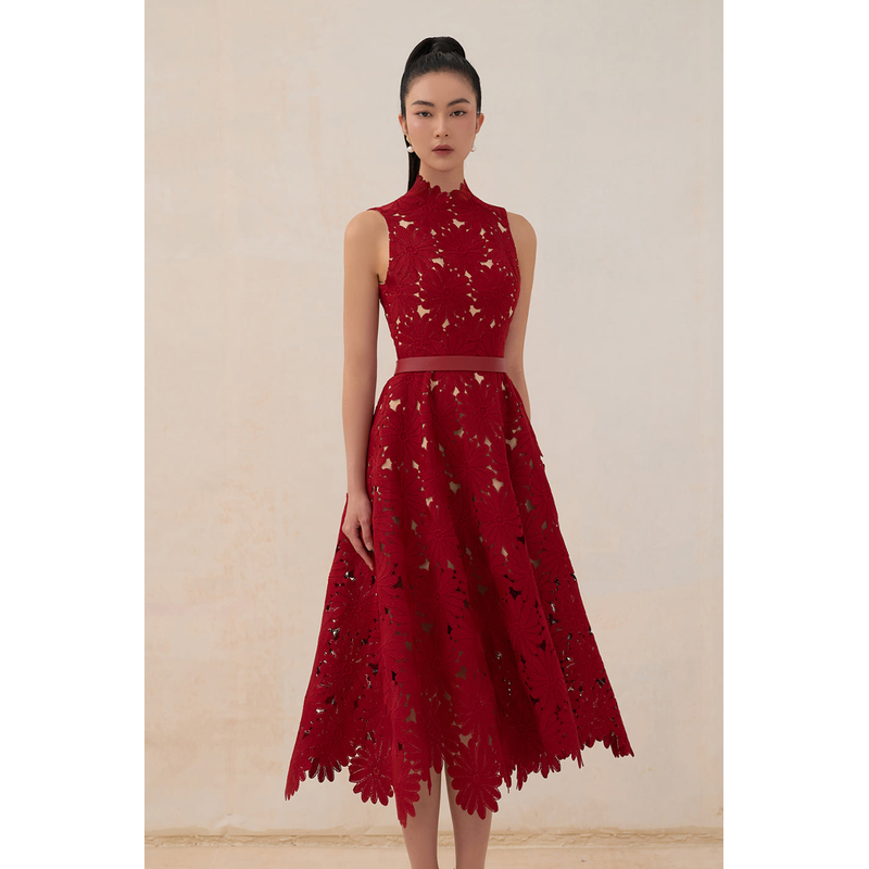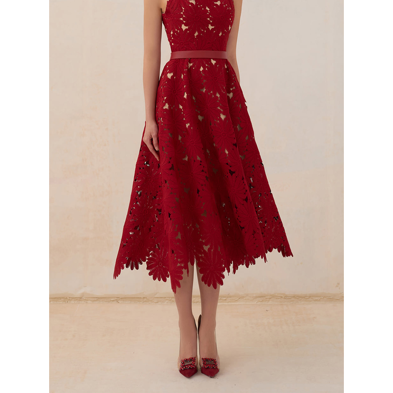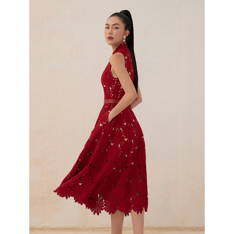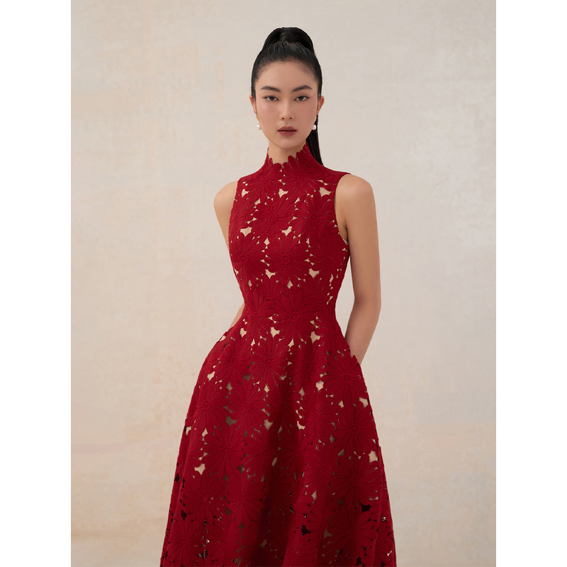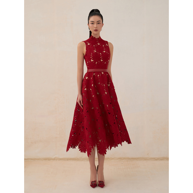 tailor shop red chrysanthemum lace dress female light luxury dress Semi-Formal Dresses princess dress