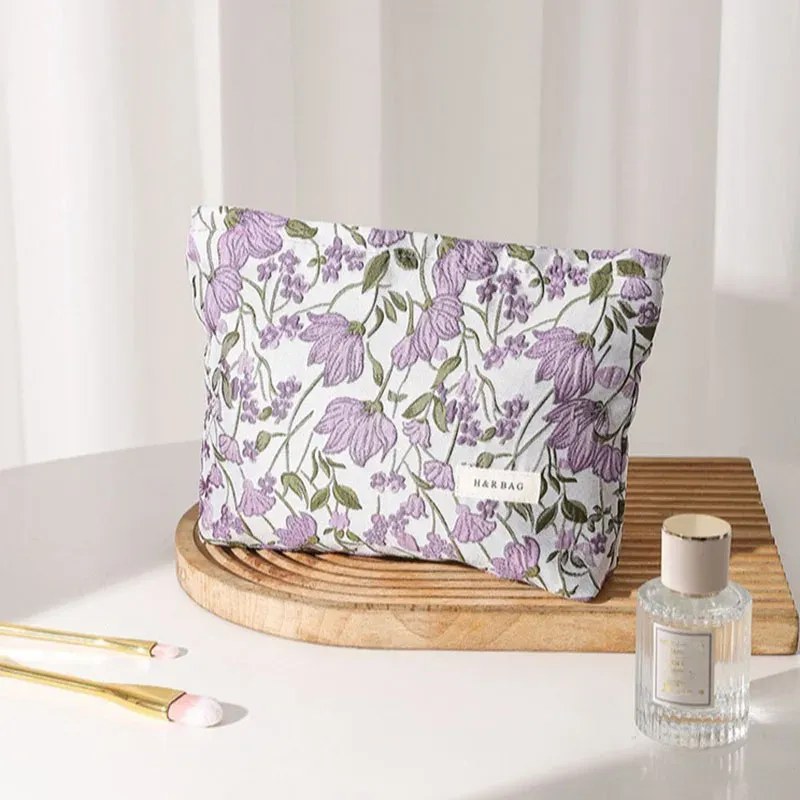 Taro Flower Color Cosmetic Bag for Women Girls Handbag Student Travel Toiletry Storage Bag Canvas Bag Kawaii Makeup Pencil Case