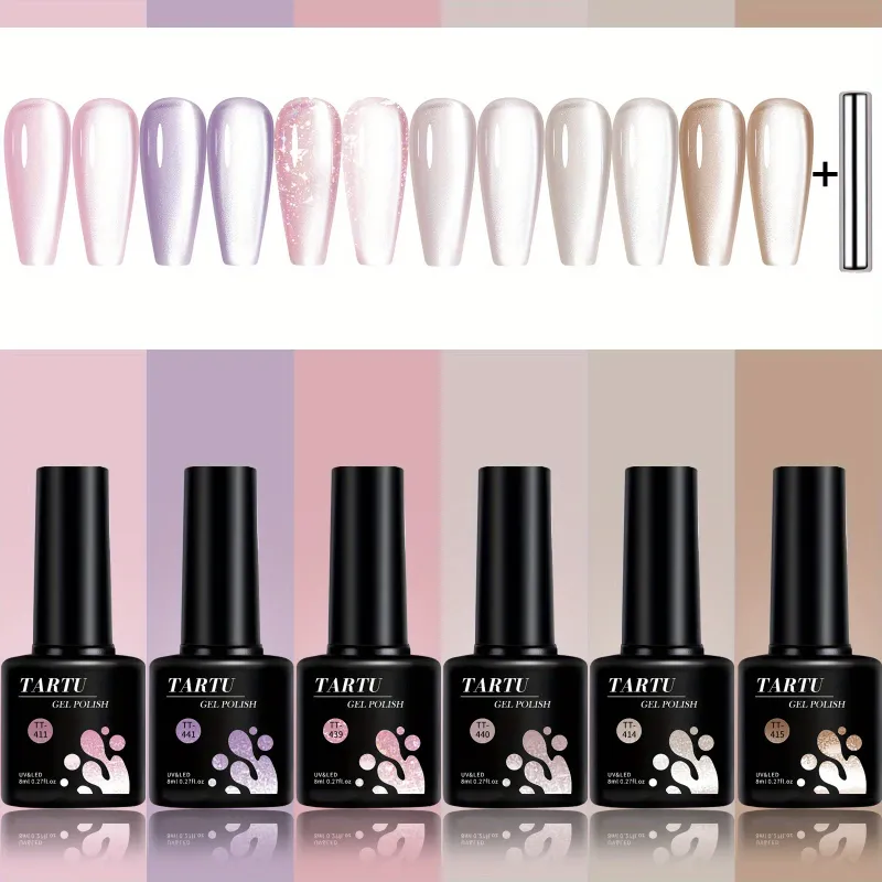 TARTU 6pcs 8ml Cat Eye Gel Nail Polish Set, 6 Colors Gel Polish Kit, Soak Off for Uv/Led, for Salon and Nail Art DIY At Home