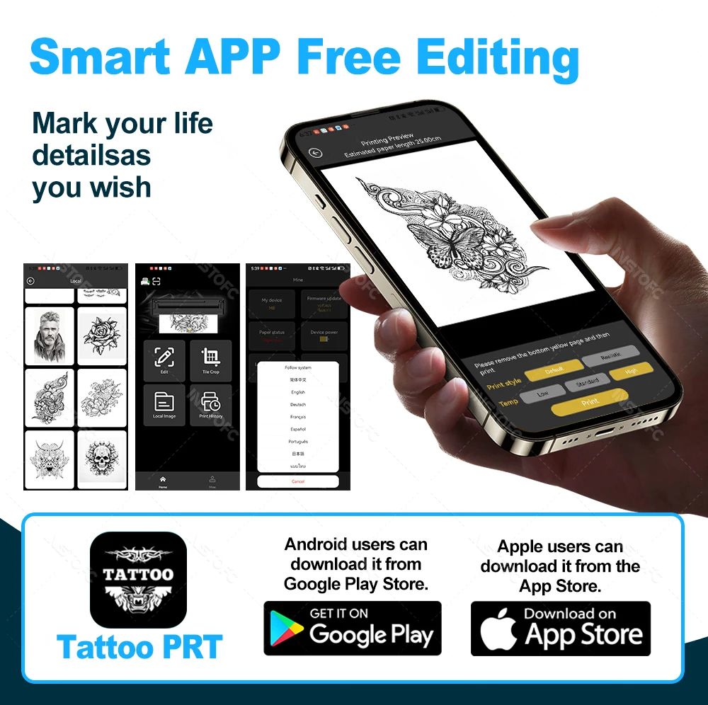 Step 2: Download the app ' Tattoo PRT' and connect to Bluetooth for phones