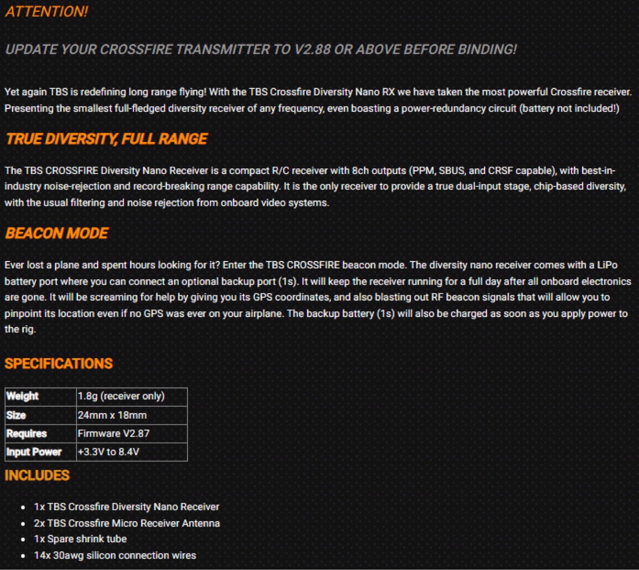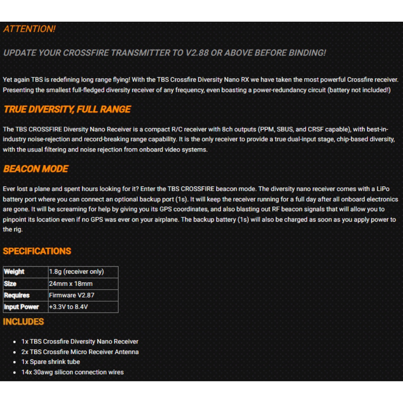 Color TBS CROSSFIRE DIVERSITY NANO RX