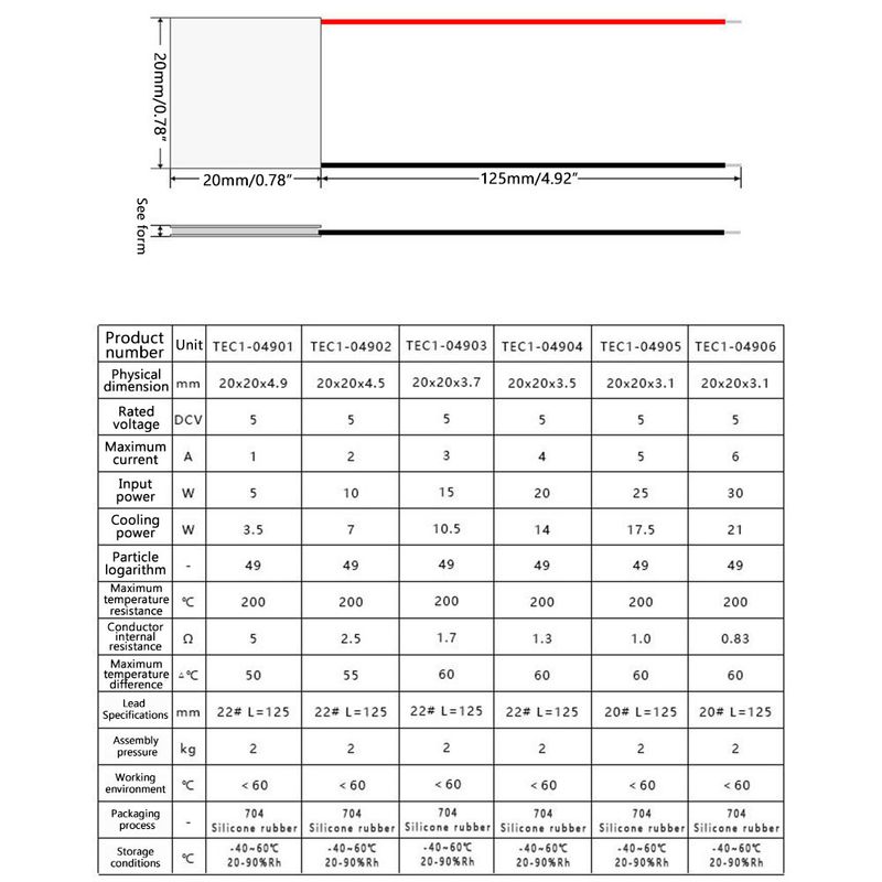 TEC1-04901 TES1-04902 Refrigeration Cooler Plate 20*20*4.9mm 20*20*4.2mm Semiconductor Refrigerator Thermoelectric Cooler