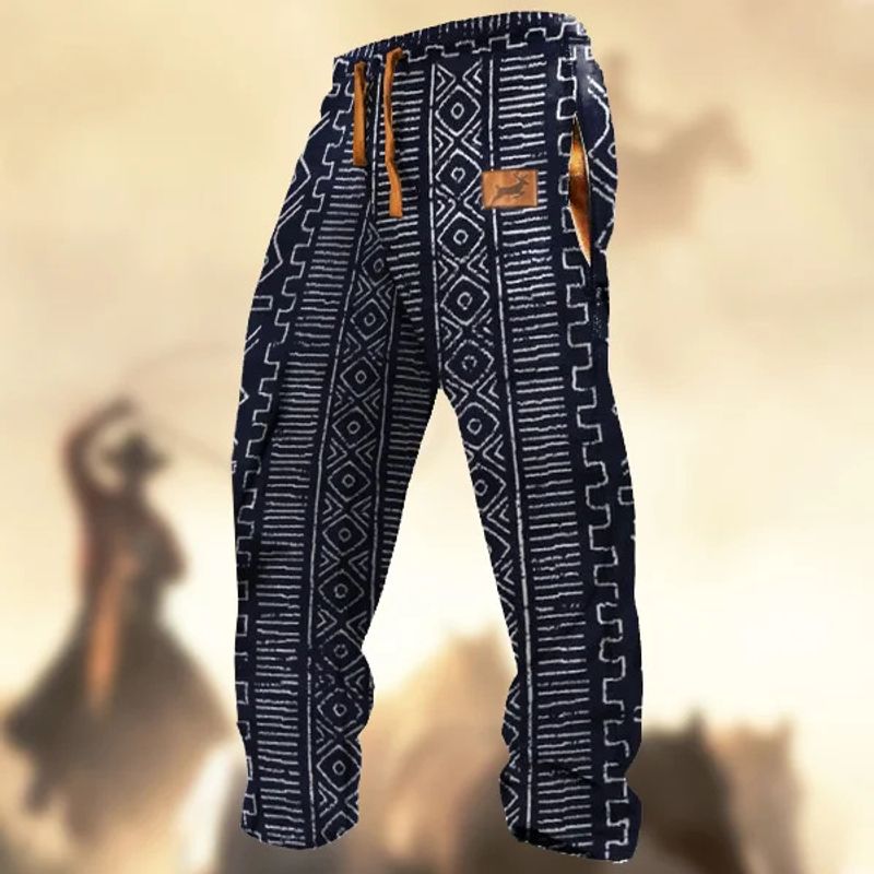 Technology Printing Trousers Elastic Closed Rope Straight-leg Trousers CD389 S