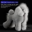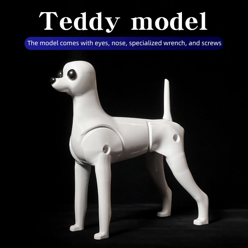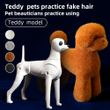 The full body and fake head design mimic a real dog, enhancing the realism of pet care simulations.