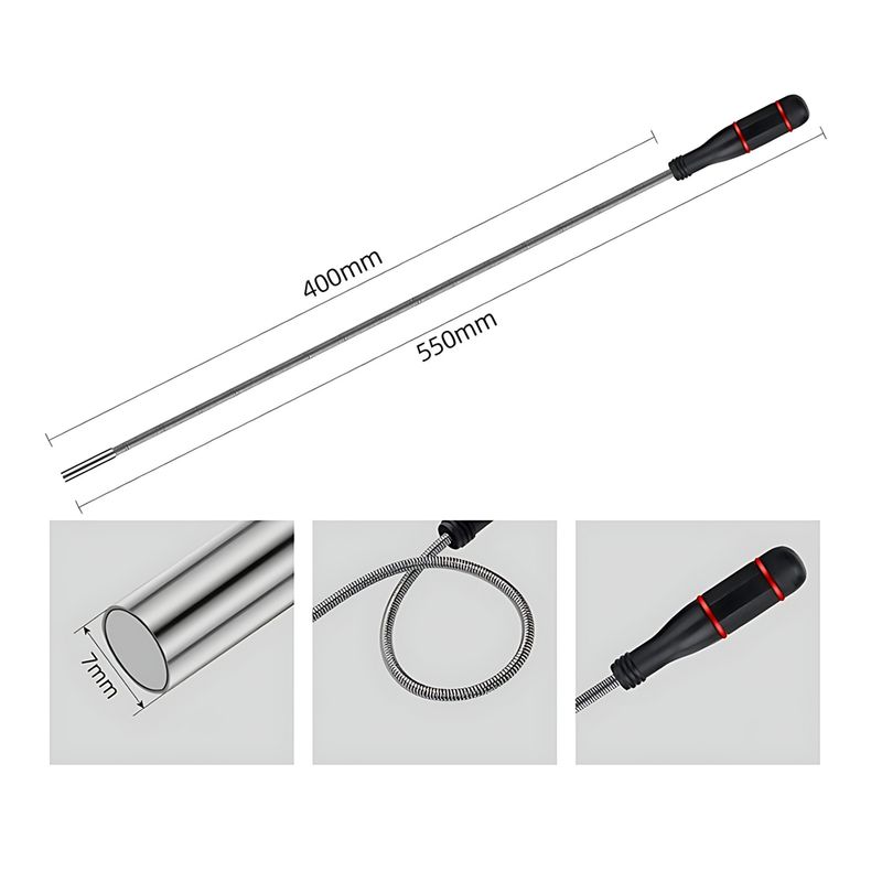 - Strong magnetic attraction flexible shaft magnet, comfortable handle control over the movement of the pickup magnet.